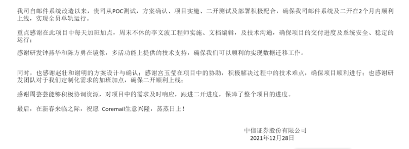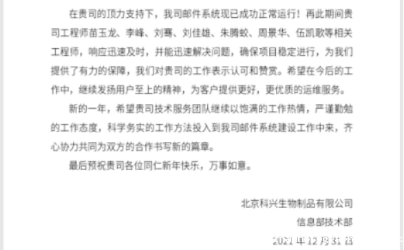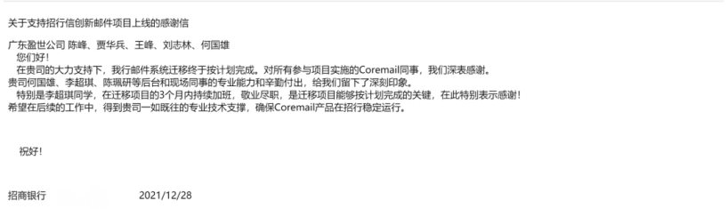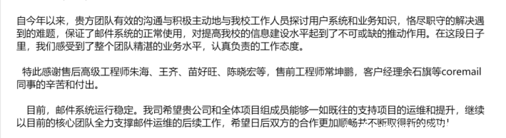 近百封感谢信来袭,为Coremail服务点赞