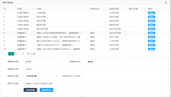 提示跳转处是钓鱼网站收集受害者信息页面跳转的规则设置。通过此页面可以控制受害者的网页跳转阶段,以及网页的弹窗提示。