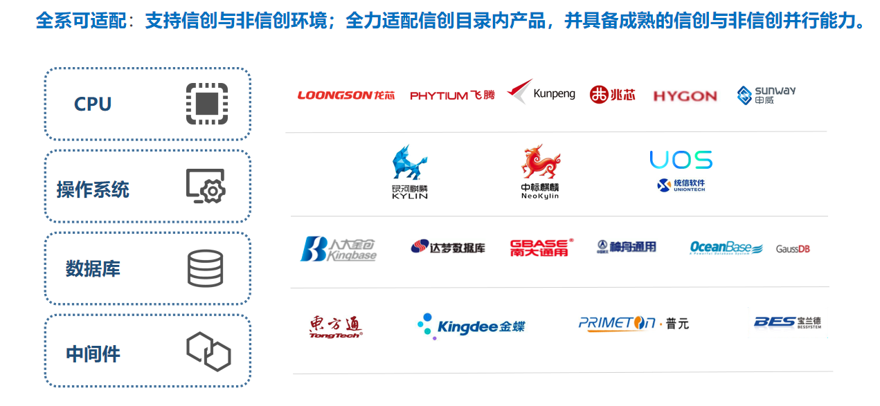 近年来,Coremail研发中心资源向信创项目全面倾斜,全力适配信创目录内的CPU、操作系统、数据库、中间件等产品,满足信创客户的应用需求。目前,六种CPU、两大国产体系(鲲鹏体系、PK体系)、四大中间件、两大数据库都已完成适配。