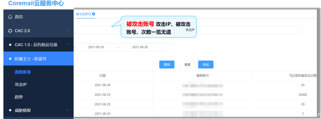 恶意邮件的精准拦截离不开CAC大数据中心的支撑,作为国内最大的反垃圾数据中心,CAC每日处理30,000,000+日均反垃圾分析请求,日均防护250,000+客户,日均截获恶意邮件高达1,000,000+封,对恶意邮件的有效拦截率高达99.8%。