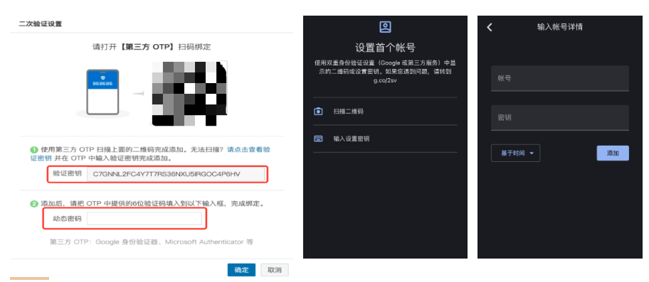 (2)先点击查看验证密钥,打开第三方OTP,输入验证密钥完成添加。