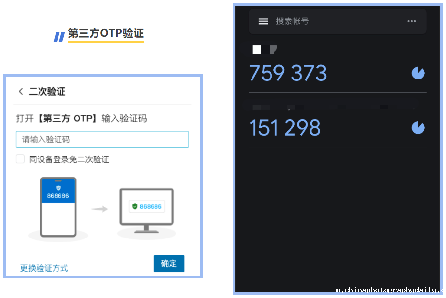 (1)使用第三方OTP直接扫码,扫码后在第三方OTP里查看六位验证码后,把六位验证码输入“动态密码“里,即完成绑定;
