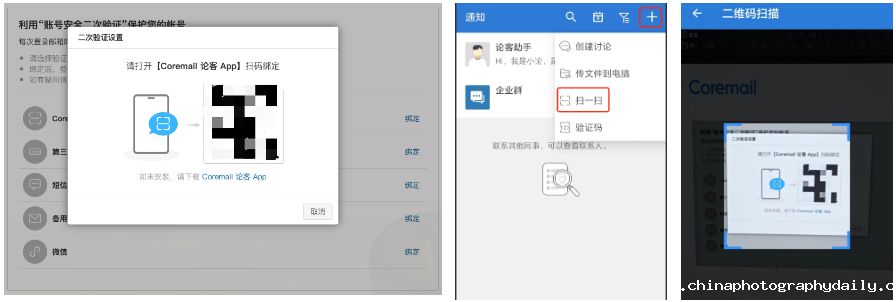 2)在webmail或Coremail邮箱客户端软件 V4.0及以上版本的二次验证绑定页,用App扫描二维码即可完成绑定。