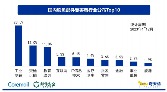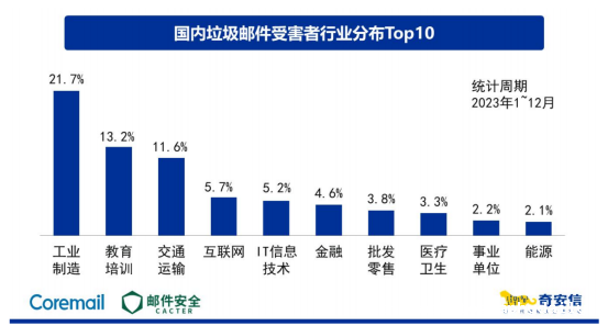 邮件安全向来是教育行业的一大痛点,由于教育行业的特殊性和重要性,国外势力、黑产链条虎视眈眈,根据Coremail AI实验室监测分析,2023年度不论是收到的钓鱼邮件数、垃圾邮件量,还是遭受到暴力破解攻击的次数,教育行业都居高不下。