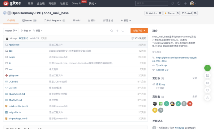 ohos_mail_base是由Coremail专为OpenHarmony系统开发的标准邮件协议SDK,也是OpenHarmony系统下第一个自主研发、开源、稳定和可扩展的邮件协议SDK,该成果也是邮件领域开发的底座。该SDK采用纯TypeScript语言实现,主要支持特性如下:
